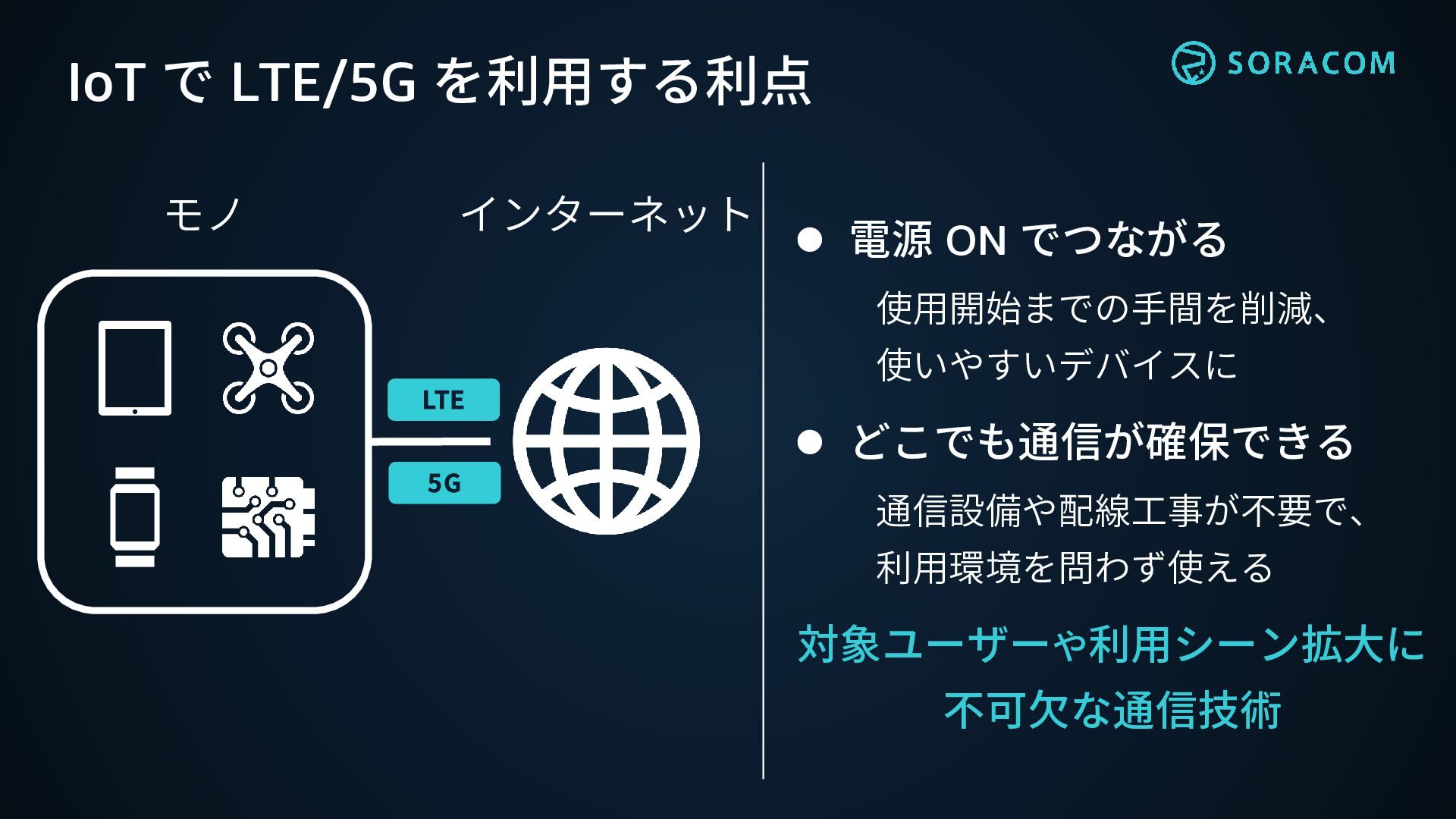 IoT で LTE/5G を利用する利点 ⚫ 電源 ON でつながる 使用開始までの手間を削減、 使いやすいデバイスに