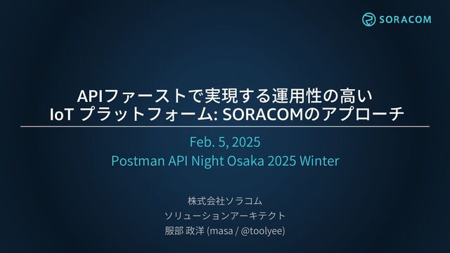 Osaka 2025 Winter 株式会社ソラコム ソリューションアーキテクト 服部 政洋 (masa / @toolyee)