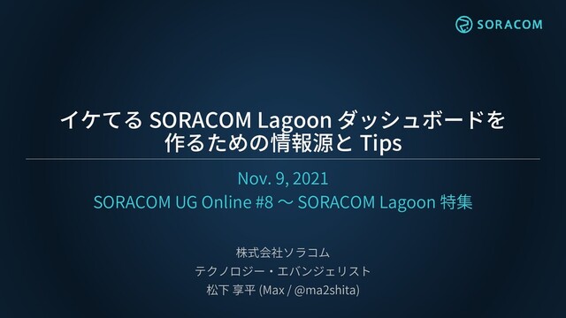 2021年11月9日(火)開催、 SORACOM UG Online #8 ~ SORACOM Lagoon 特集 にて、ソラコム松下が発表した「イケてるSORACOM Lagoonダッシュボードを作るための情報源とTips」の資料です。