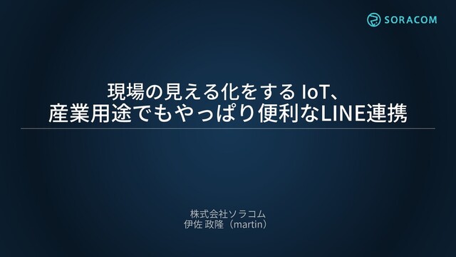 2021年10月21日(木)開催、SORACOM IoT Meetup #4〜LINE 通知を使いこなそう!〜にて、ソラコム伊佐が発表した「現場の見える化をするIoT、産業用途でもやっぱり便利なLINE連携」資料です。