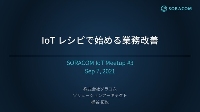 IoT レシピで始める業務改善 SORACOM IoT Meetup #3 Sep 7, 2021 株式会社ソラコム