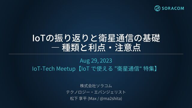 IoTの振り返りと衛星通信の基礎 ― 種類と利点・注意点 Aug 29, 2023 IoT-Tech Meetup【IoT で使える "衛星通信“