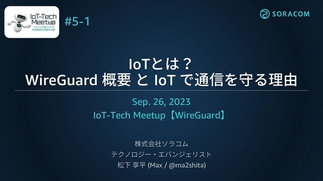 Meetup【WireGuard】 株式会社ソラコム テクノロジー・エバンジェリスト 松下 享平 (Max / @ma2shita) #5-1