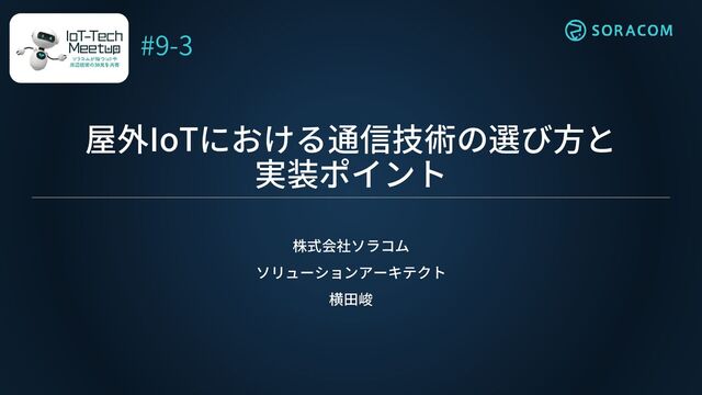 屋外IoTにおける通信技術の選び方と 実装ポイント 株式会社ソラコム ソリューションアーキテクト 横田峻 #9-3