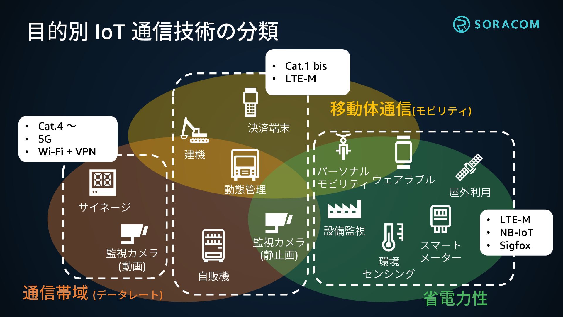 目的別 IoT 通信技術の分類 監視カメラ (動画) サイネージ 移動体通信(モビリティ) 自販機 監視カメラ (静止画)