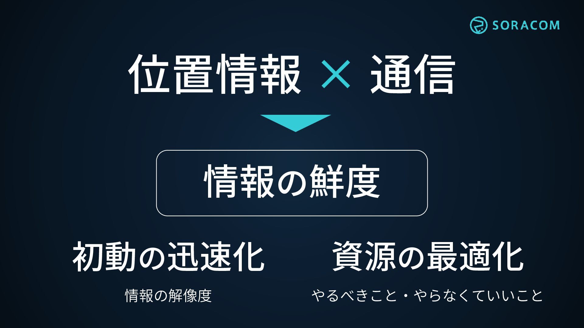 位置情報 × 通信 情報の鮮度 初動の迅速化 資源の最適化 情報の解像度 やるべきこと・やらなくていいこと