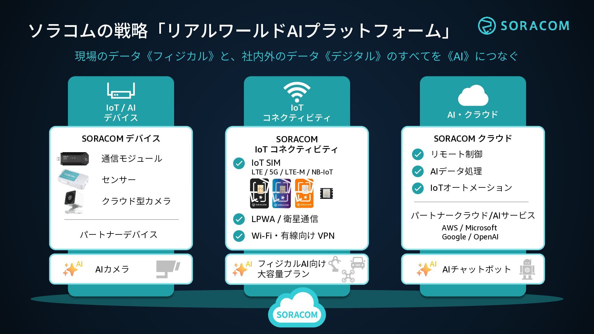ソラコムの戦略「リアルワールドAIプラットフォーム」 IoT / AI デバイス AI・クラウド SORACOM デバイス 通信モジュール センサー