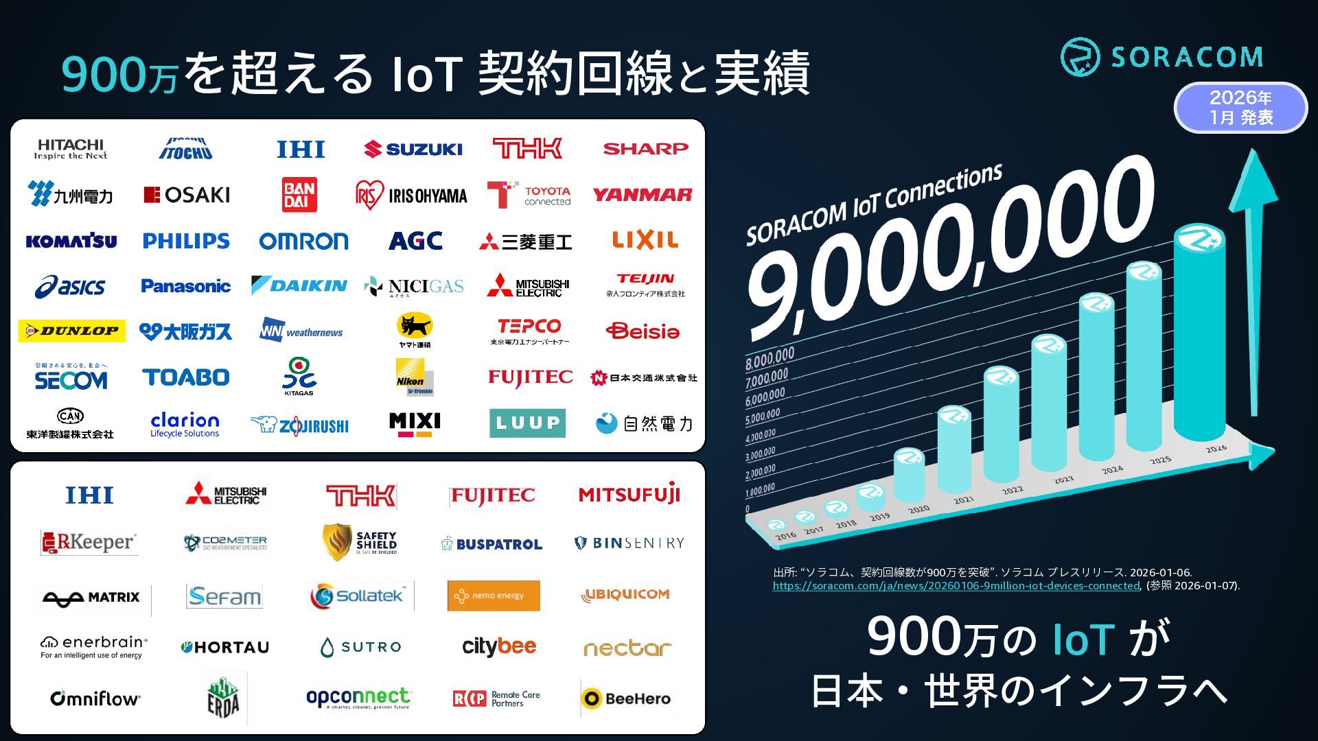プレスリリース. 2026-01-06. https://soracom.com/ja/news/20260106-9million-iot-devices-connected, (参照 2026-01-07). 2026 年 1 月 発表