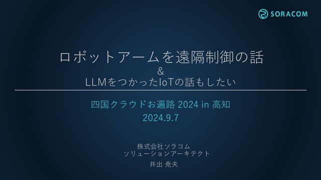 ロボットアームを遠隔制御の話 & LLMをつかったIoTの話もしたい 四国クラウドお遍路 2024 in 高知 2024.9.7 株式会社ソラコム ソリューションアーキテクト