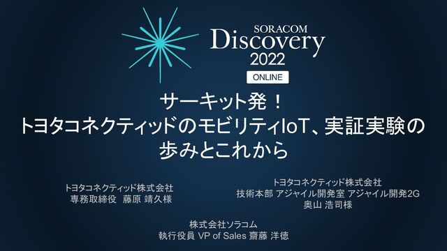 昨今、開発のアジリティ(俊敏性)を高め、短期間で開発し、実際に試し、顧客のフィードバックを受け、進めていくサービス開発スタイルが拡がりつつあります。本セッションでは自動車レース「SUPER FORMULA」での、振動、スピードなど過酷な環境下でのデータ活用プロジェクト実証実験から始まったモビリティプラットフォームの取り組み、車載CANデータ活用への挑戦など、トヨタコネクティッドの実証実験の歩みとそこから得られた学びについてお話を伺います。