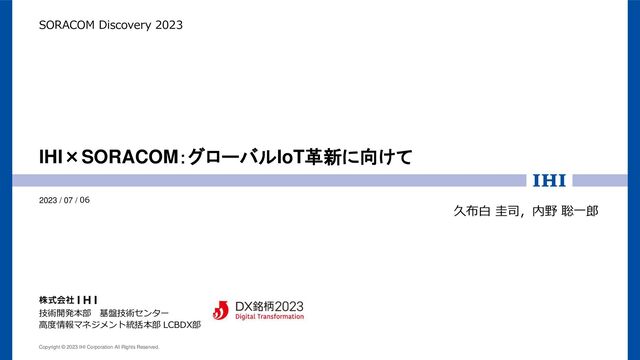 株式会社IHI 高度情報マネジメント統括本部 ライフサイクルビジネス推進Gr 内野 聡一郎
