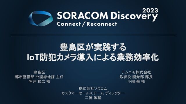 豊島区では、不法投棄や軽犯罪対策にカメラデータを活用するに際し、SDカード型からエッジとクラウドのハイブリッド型映像管理ソリューションを導入することで、データ管理工数の大幅な削減に成功しています。本セッションでは、豊島区の担当者から自治体が抱える課題や予算化までのプロセス、今後の展開など、本プロジェクトについて詳しくお話を伺います。さらに、アムニモ株式会社と共に自治体向けのIoT支援に関する情報もご紹介します。
