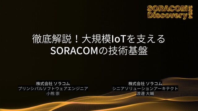 株式会社ソラコム プリンシパルソフトウェアエンジニア 小熊 崇 株式会社ソラコム シニアソリューションアーキテクト 渡邊 大輔