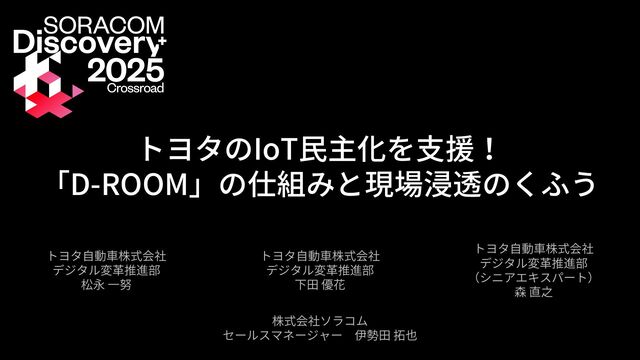 トヨタのIoT民主化を支援!「D-ROOM」の仕組みと現場浸透のくふう【SORACOM Discovery 2025】