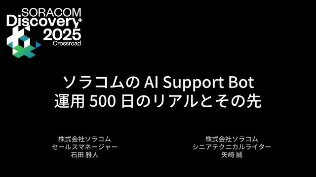 ソラコムでは、カスタマーサポートの品質と効率を両立するため、AI Support Bot を自社開発し、2023年冬から提供しています。本セッションでは、開発に至った背景、構築時の課題とその解決策、運用開始後の成果と学びをご紹介します。さらに、AIの進化とともに変化するソラコムが描く次のステップについても展望を語ります。