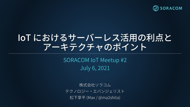 2021年7月6日(火)に開催したSORACOM IoT Meetup #2で松下が発表した資料を公開しました。 https://soracom.connpass.com/event/214050/