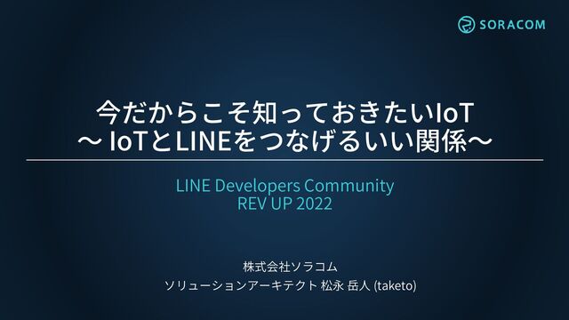 今だからこそ知っておきたいIoT ~ IoTとLINEをつなげるいい関係〜 LINE Developers Community REV UP 2022 株式会社ソラコム