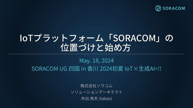 IoTプラットフォーム「SORACOM」の 位置づけと始め方 May. 18, 2024 SORACOM UG 四国 in 香川