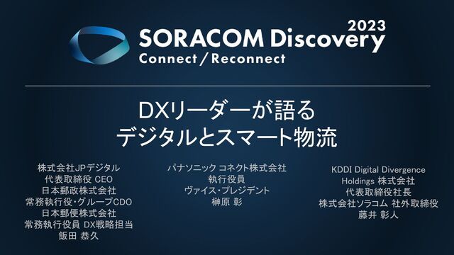 物流業界は技術革新、環境問題、人手不足、地域差、グローバル化などの課題を背景に、デジタル化と持続可能性に向けた取り組みが求められています。本セッションでは、グローバル企業で活躍後、物流業界でDXに取り組むJPデジタル/日本郵政 飯田氏、パナソニック コネクト 榊原氏をゲストに、企業のDXを支援してきたKDDI Digital Divergence Holdings 藤井氏をモデレーターに迎え、物流業界を軸にデジタル・テクノロジー活用の最新動向と可能性、そして組織としてのデジタル活用推進についてお話を伺います。