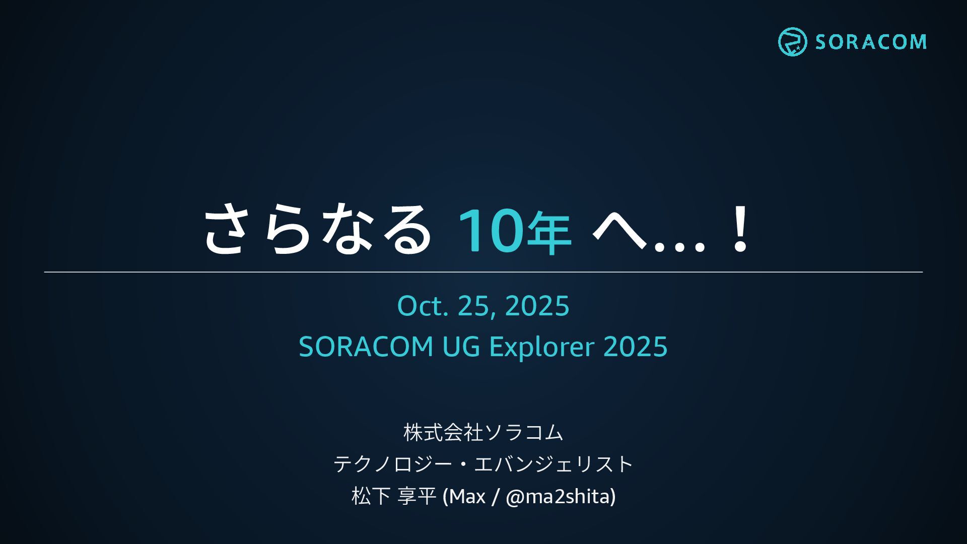 さらなる 10年 へ…! Oct. 25, 2025 SORACOM UG Explorer 2025