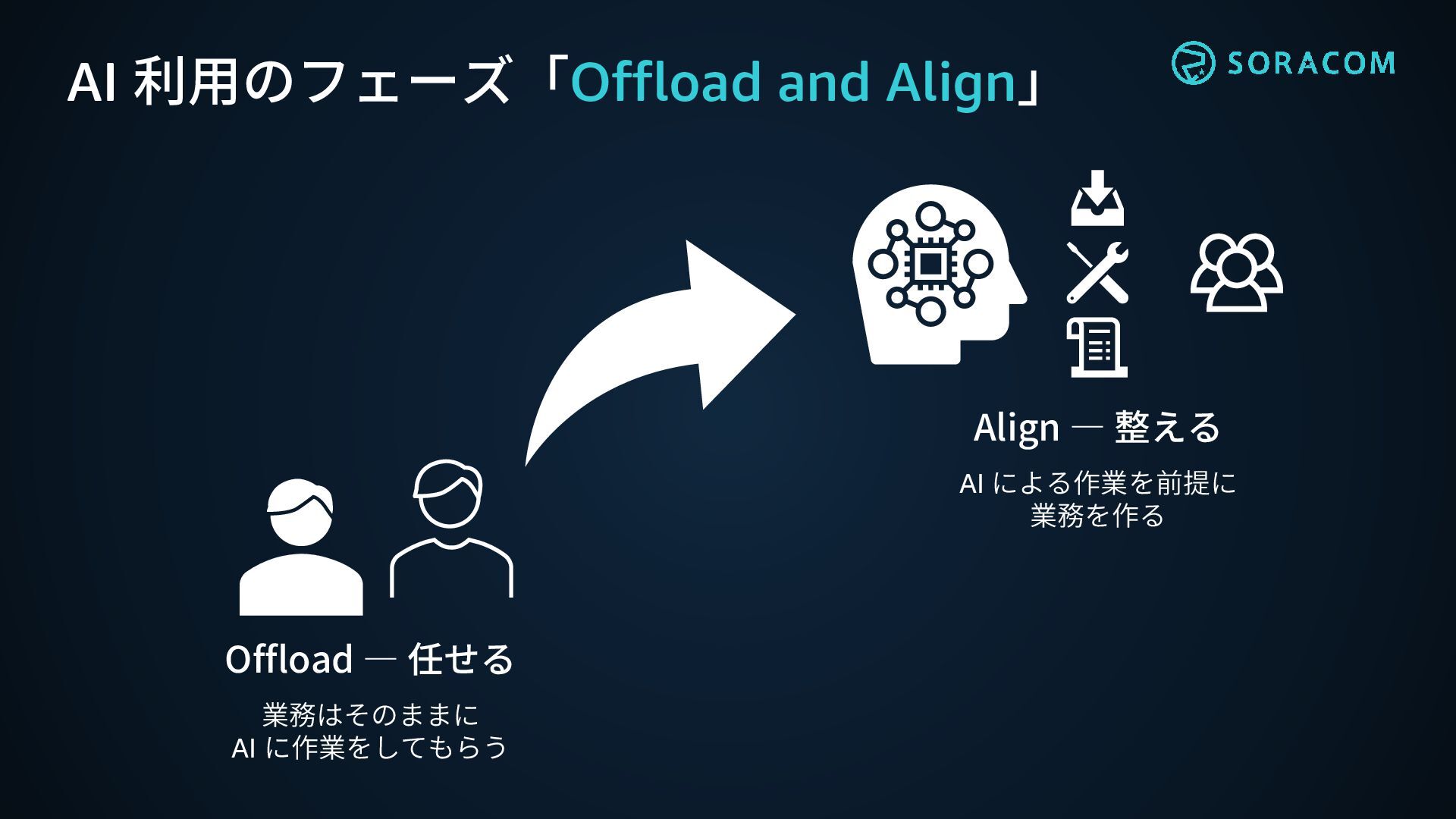 AI 利用のフェーズ「Offload and Align」 業務はそのままに AI に作業をしてもらう Offload ― 任せる