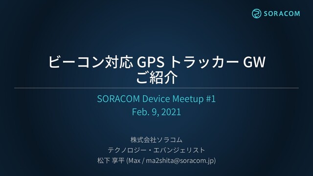 1台二役「GPSトラッカー」「BLEゲートウェイ(中継器)」として使えるIoTデバイスとBLEセンサーが一緒になったパッケージの解説。利用開始までの手順からクラウド連携のアーキテクチャ、対応しているBLEセンサーやiBeaconデバイスの紹介、実測した電波強度などの技術情報も紹介。(2/9 開催 SORACOM Device Meetup #1 / https://soracom.connpass.com/event/202178/)