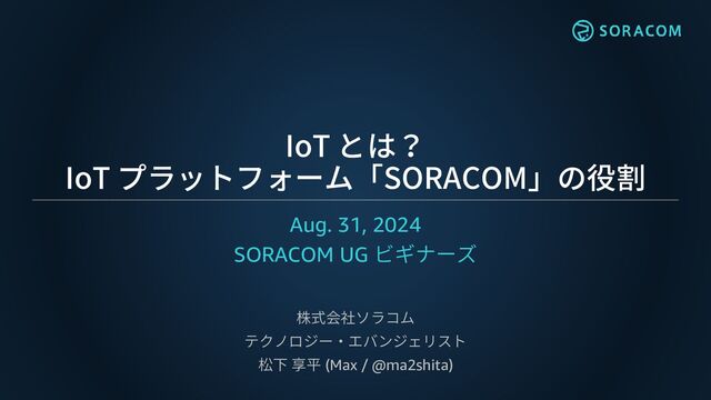 株式会社ソラコム テクノロジー・エバンジェリスト 松下 享平 (Max / @ma2shita)