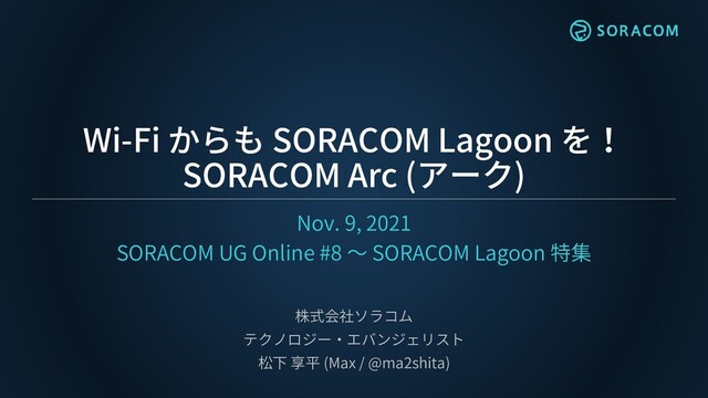 2021年11月9日(火)開催、 SORACOM UG Online #8 ~ SORACOM Lagoon 特集 にて、ソラコム松下が発表した「Wi-Fi からも SORACOM Lagoon を!SORACOM Arc (アーク)」の資料です。