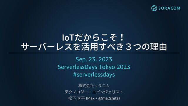 2023年9月23日開催『ServerlessDays Tokyo 2023』にて、ソラコム松下(max)が発表した資料です。