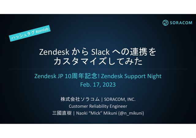 Night Feb. 17, 2023 株式会社ソラコム | SORACOM, INC. Customer Reliability Engineer 三國直樹 | Naoki “Mick” Mikuni (@n_mikuni)