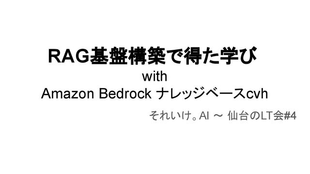 RAG基盤構築で得た学び with Amazon Bedrock ナレッジベースcvh それいけ。AI 〜 仙台のLT会#4