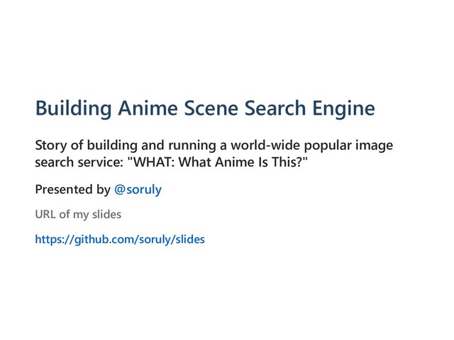 for providing anilist.co info via Anilist API bちゃん, Desmond, FangzhouL, Snadzies, WelkinWill, yuriks, and 16 other Patrons ccd0 for integrating whatanime.ga into 4chan-x Xamayon for integrating whatanime.ga into saucenao.com egoist for docute that makes API docs bestshow for reporting an XSS issue regarding CVE-2017-6390 fans that help me to answer questions on discord whoever shared, complained and made suggestions whoever bring anime to this world ❤