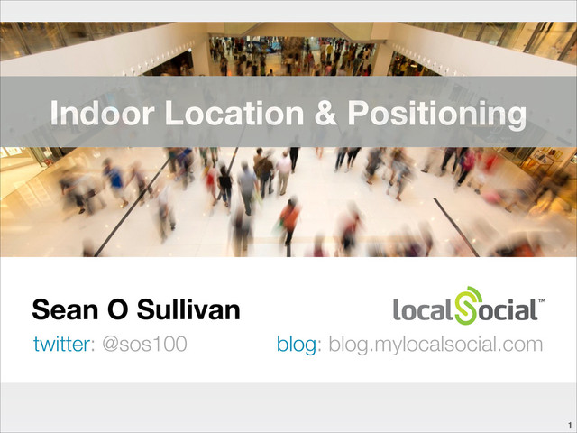 Beacons Light Either fingerprint or triangulate WiFi Access Points or Beacons Sound How Comment All mobile platform vendors use this (see next) Magnetic Dead Reckoning Dedicated Beacons used to mark areas or zones Apple iBeacon recently became the poster child for this Special Lights emit a unique code invisible to human eye Front facing camera detects the code Sound inaudible to the human ear ShopKick pioneered this in US Fingerprint of magnetic field variations used to fix position Area is first mapped in order to create a magnetic field map Direction, Speed, Turns, Height, Requires a known fixed starting point (often GPS or WiFi)