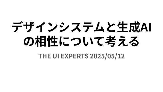 デザインシステムと⽣成AI の相性について考える THE UI EXPERTS 2025/05/12