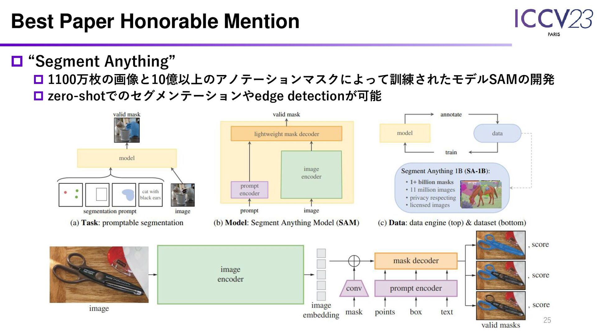Best Paper Honorable Mention “Segment Anything” 1100万枚の画像と10億以上のアノテーションマスクによって訓練されたモデルSAMの開発