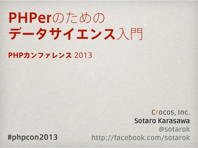 Crocos, Inc. Sotaro Karasawa @sotarok http://facebook.com/sotarok 1)1FSͷͨΊͷ σʔλαΠΤϯεೖ QIQDPO 1)1ΧϯϑΝϨϯε