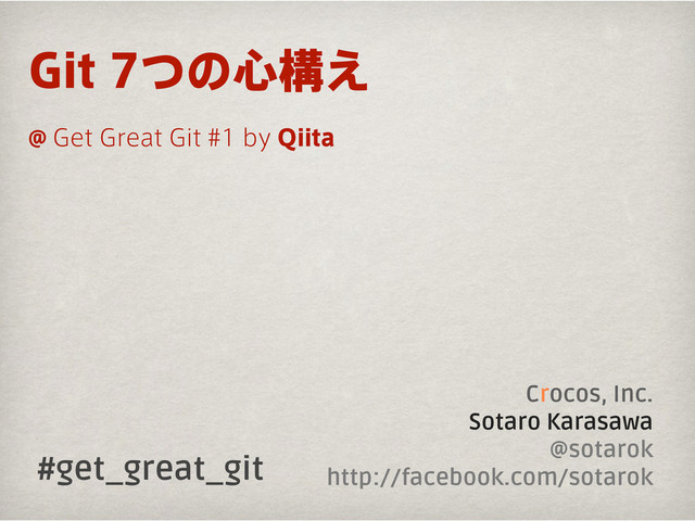 Crocos, Inc. Sotaro Karasawa @sotarok http://facebook.com/sotarok (JUͭͷ৺ߏ͑ #get_great_git @ (FU(SFBU(JUCZ2JJUB