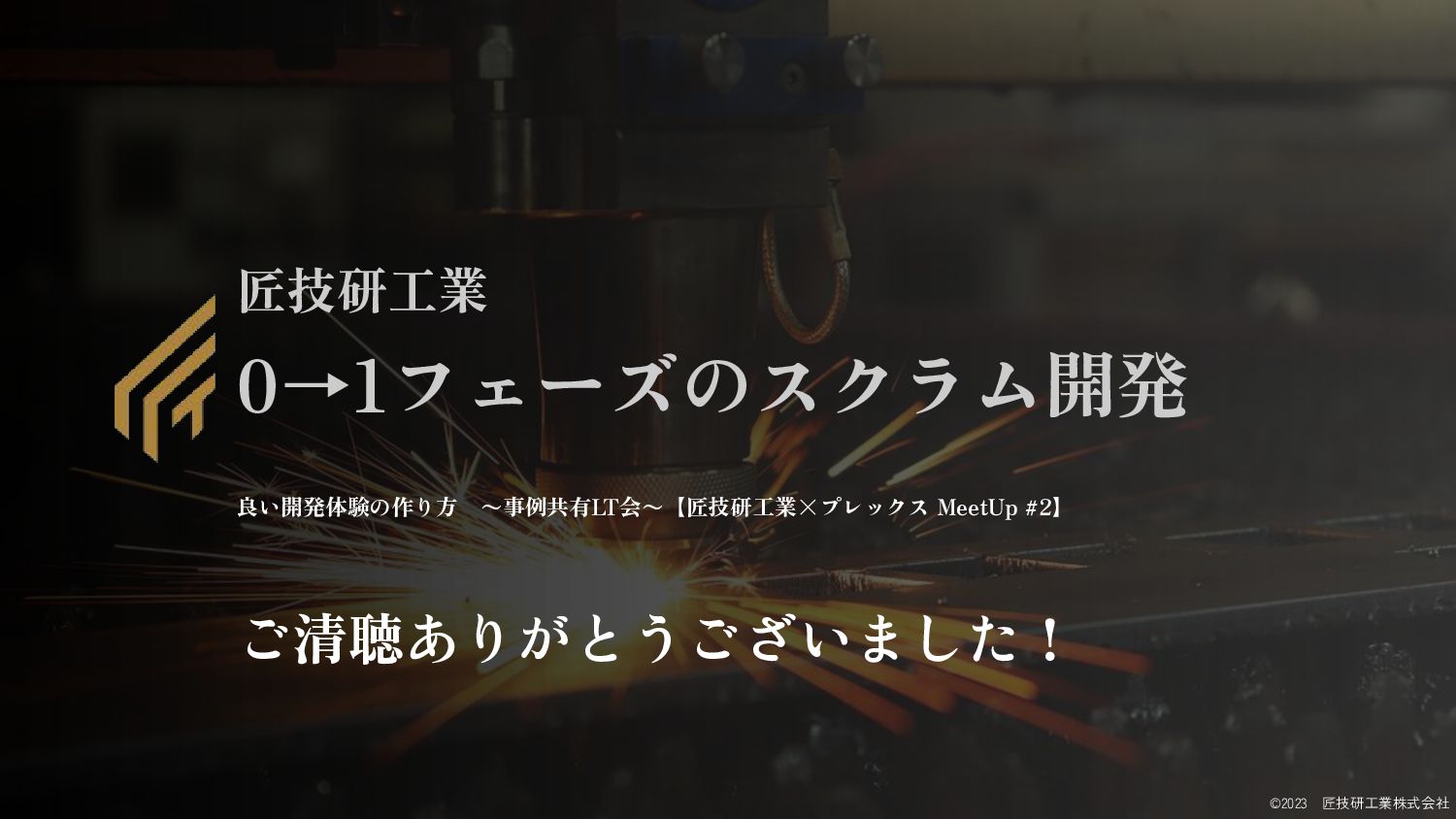©2023 匠技研工業株式会社 匠技研工業 0→1フェーズのスクラム開発 良い開発体験の作り方 〜事例共有LT会〜【匠技研工業×プレックス MeetUp #2】
