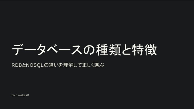 データベースの種類と特徴 RDBとNOSQLの違いを理解して正しく選ぶ tech.make #1