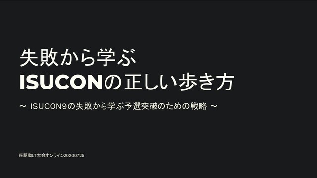 失敗から学ぶ ISUCONの正しい歩き方 ~ ISUCON9の失敗から学ぶ予選突破のための戦略 ~ 座駆動LT大会オンライン20200725