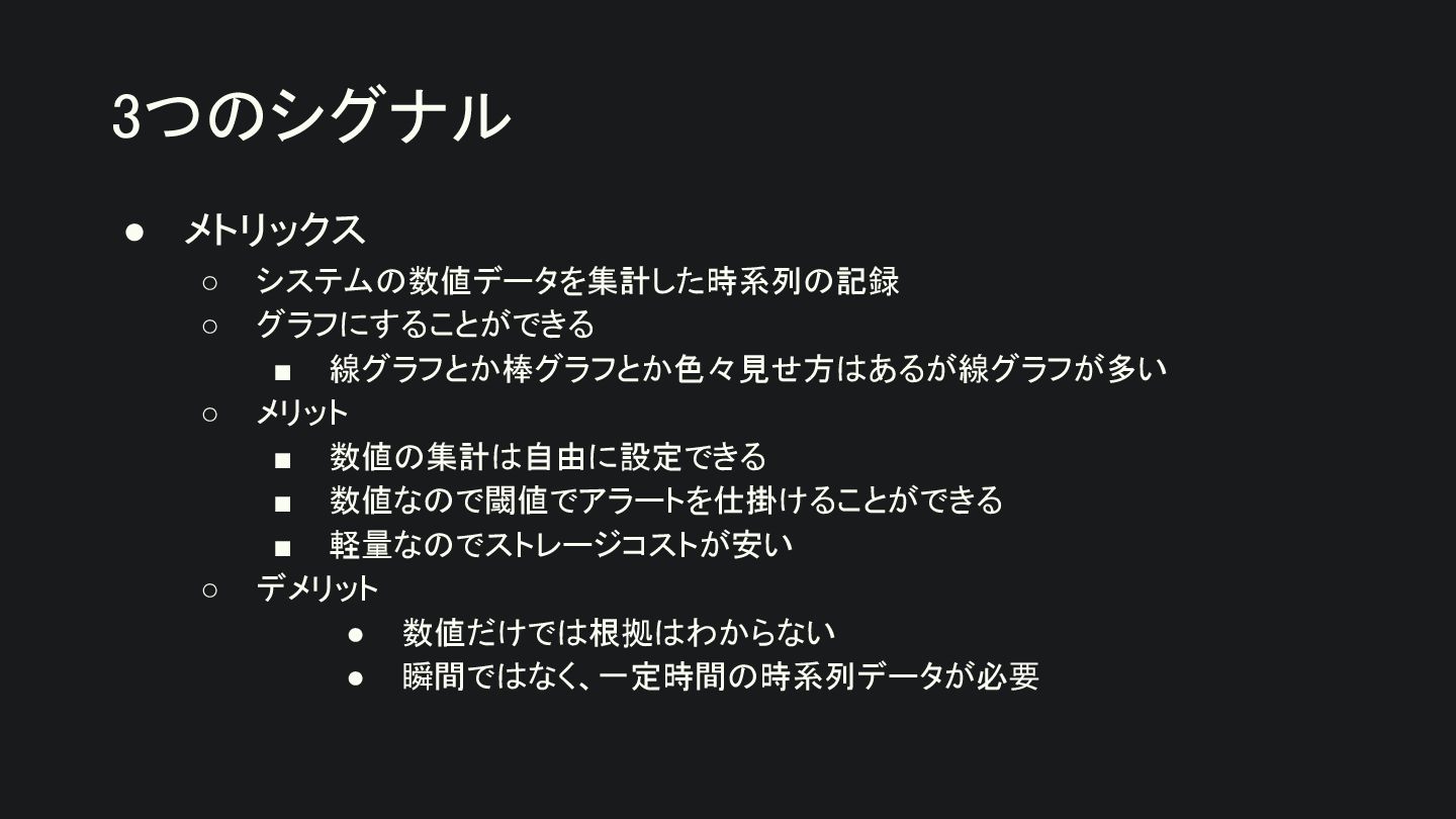 • 初手はメトリックスから始めるのが良い