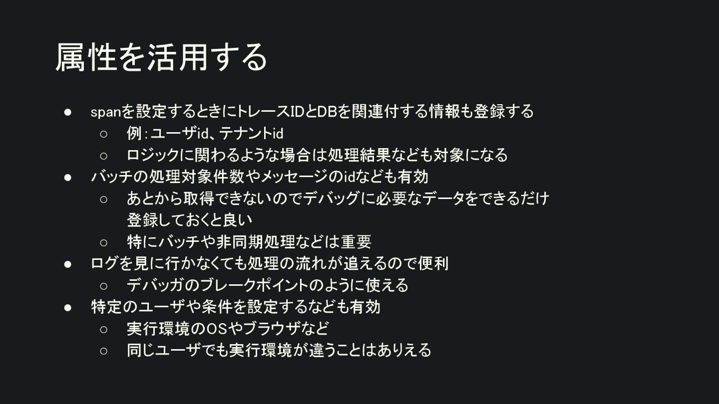 • ログよりはトレースの方がインパクトがある