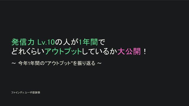 発信力 Lv.10の人が1年間で どれくらいアウトプットしているか大公開! ~ 今年1年間の”アウトプット”を振り返る ~ ファインディ ユーザ感謝祭