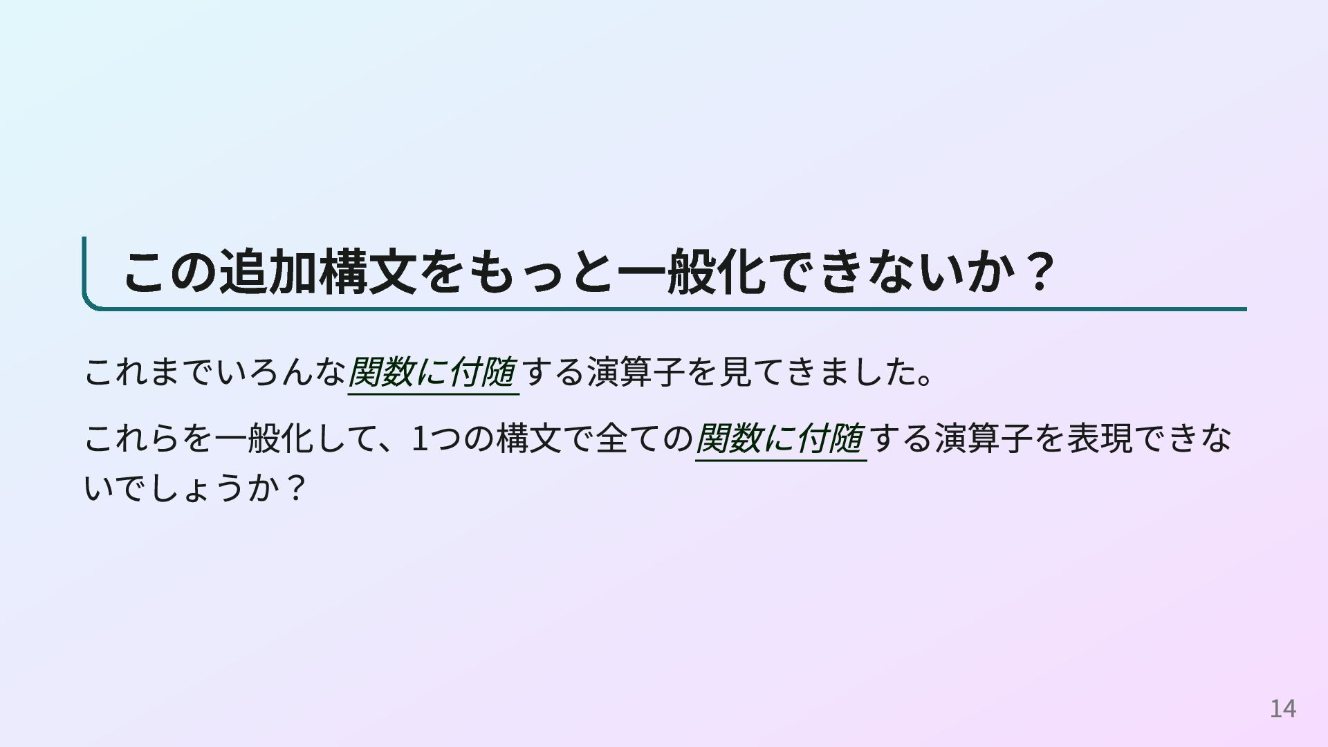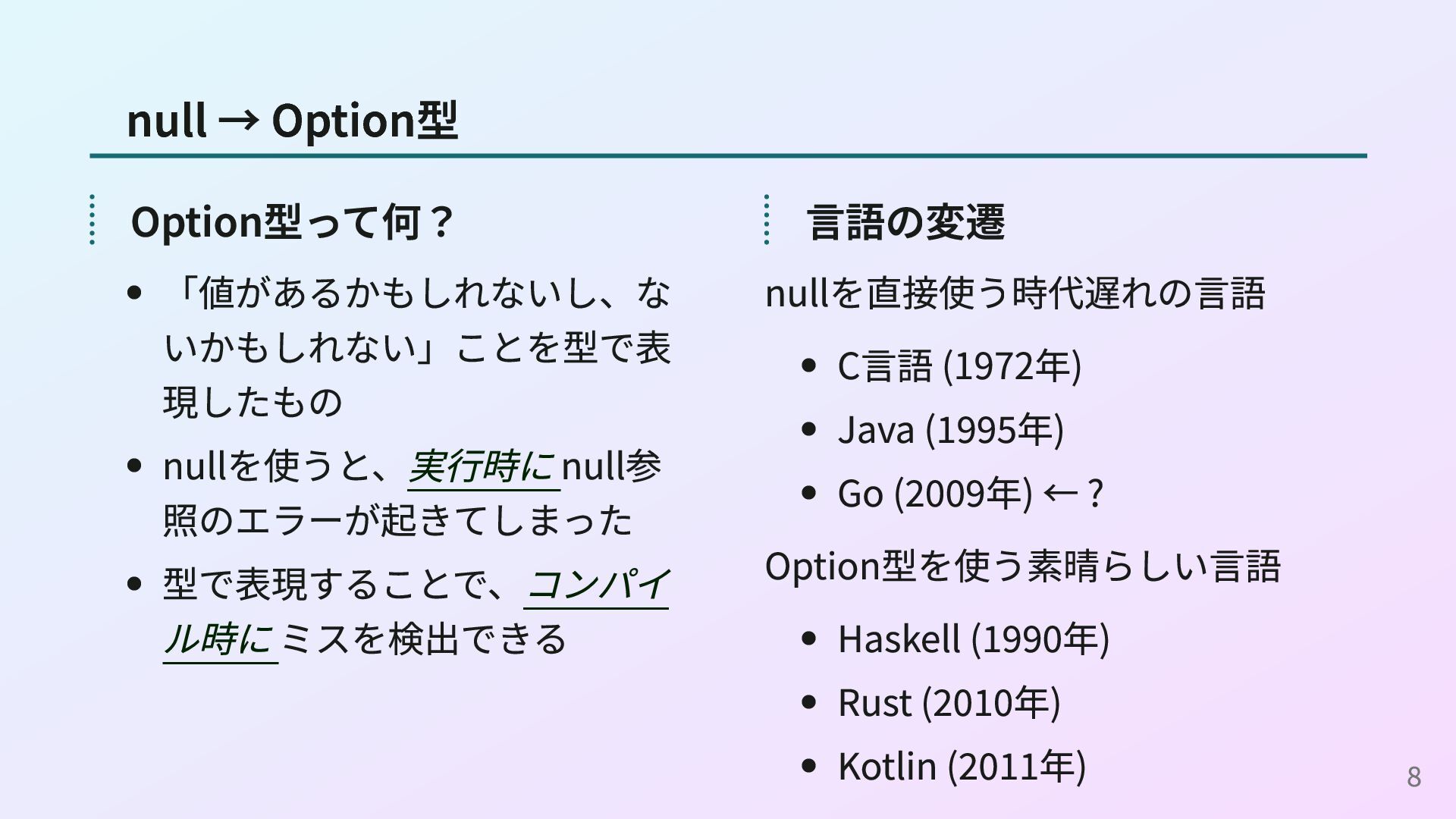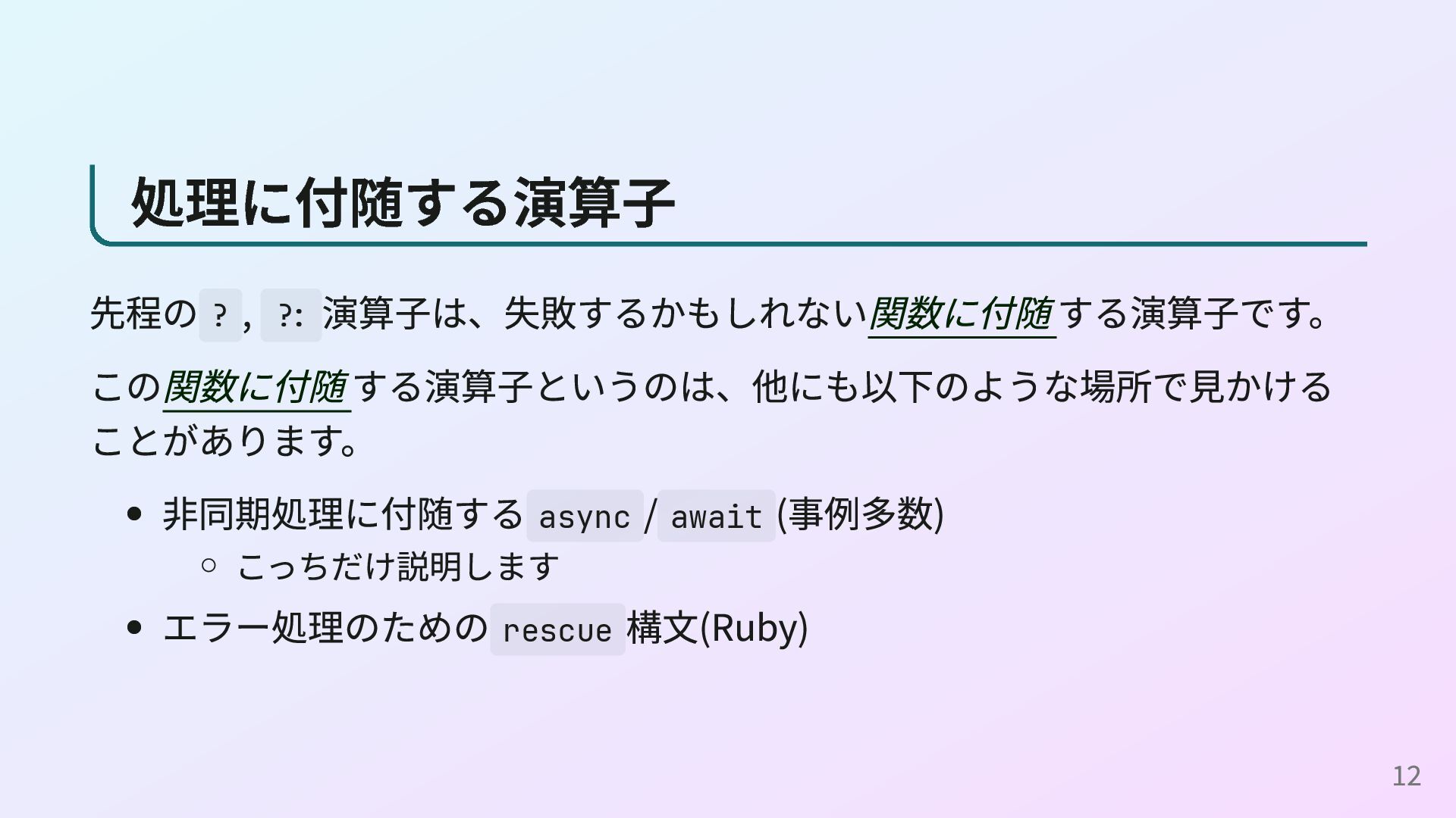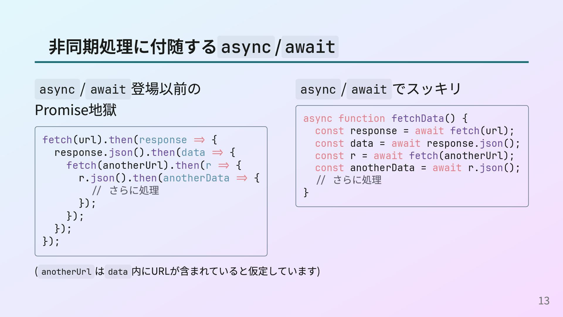 <- readConfig n <- parseInt s return n (readConfigとparseIntの定義) readConfig :: Maybe String readConfig = Just "42" parseInt :: String -> Maybe Int parseInt s = case reads s of [(n, "")] -> Just n _ -> Nothing これはOption型の例ですが、Result型やPromise型、IOモナドなどでも同様に do構文を使えます。 16