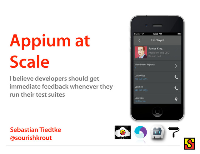 time 2min) 2. Execute 6 iOS + 6 Android tests in Sauce Cloud (exec time ~45 sec) 3. Double tests to 24 (exec time ~50 sec) 4. Double tests to 48 (exec time ~75 sec) 5. … ! Show case execution time will remain flat while number of tests increase exponentially.