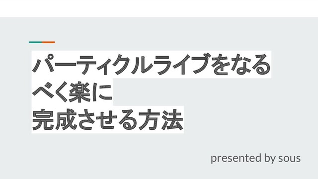 パーティクルライブをなる べく楽に 完成させる方法 presented by sous