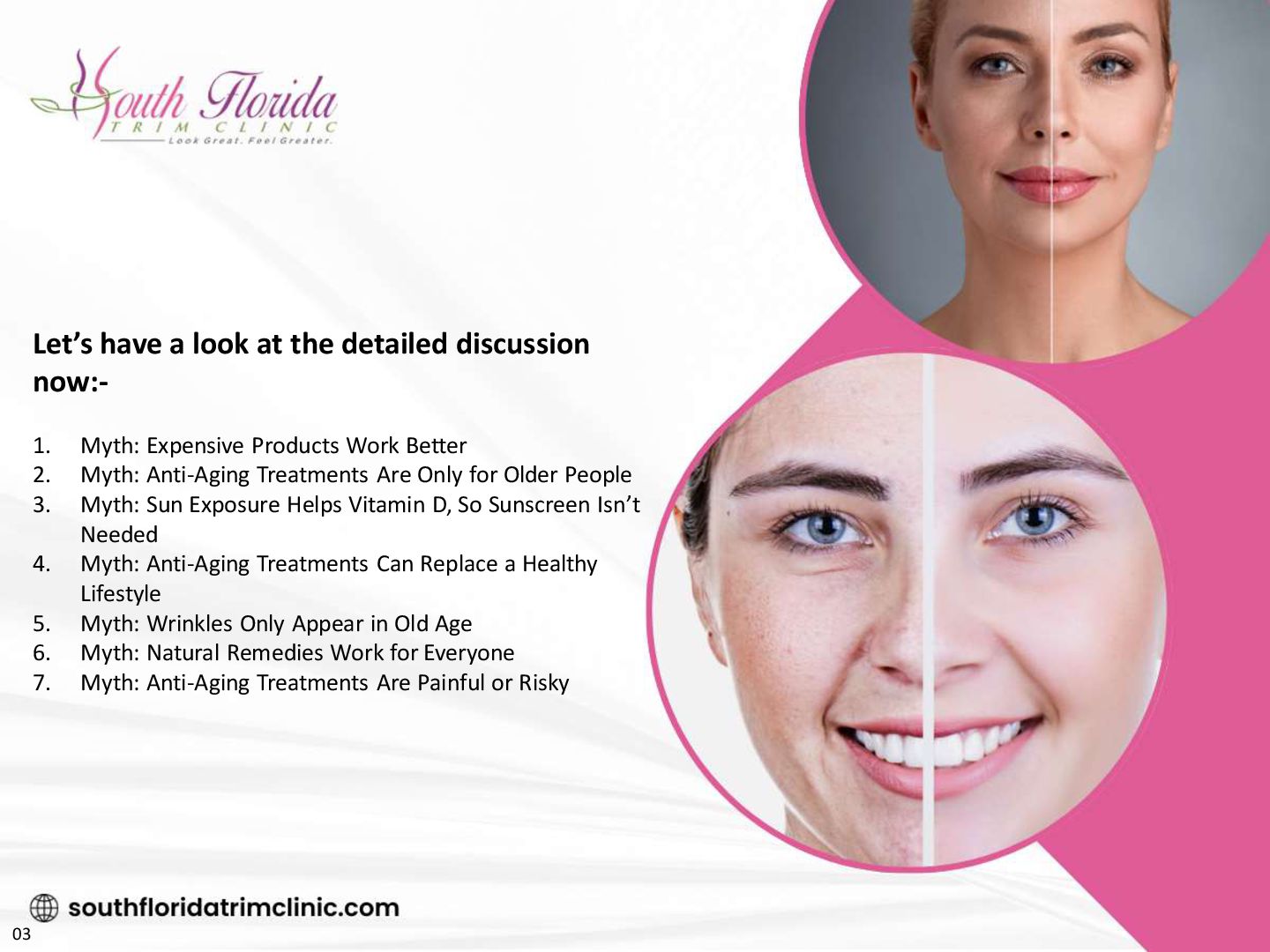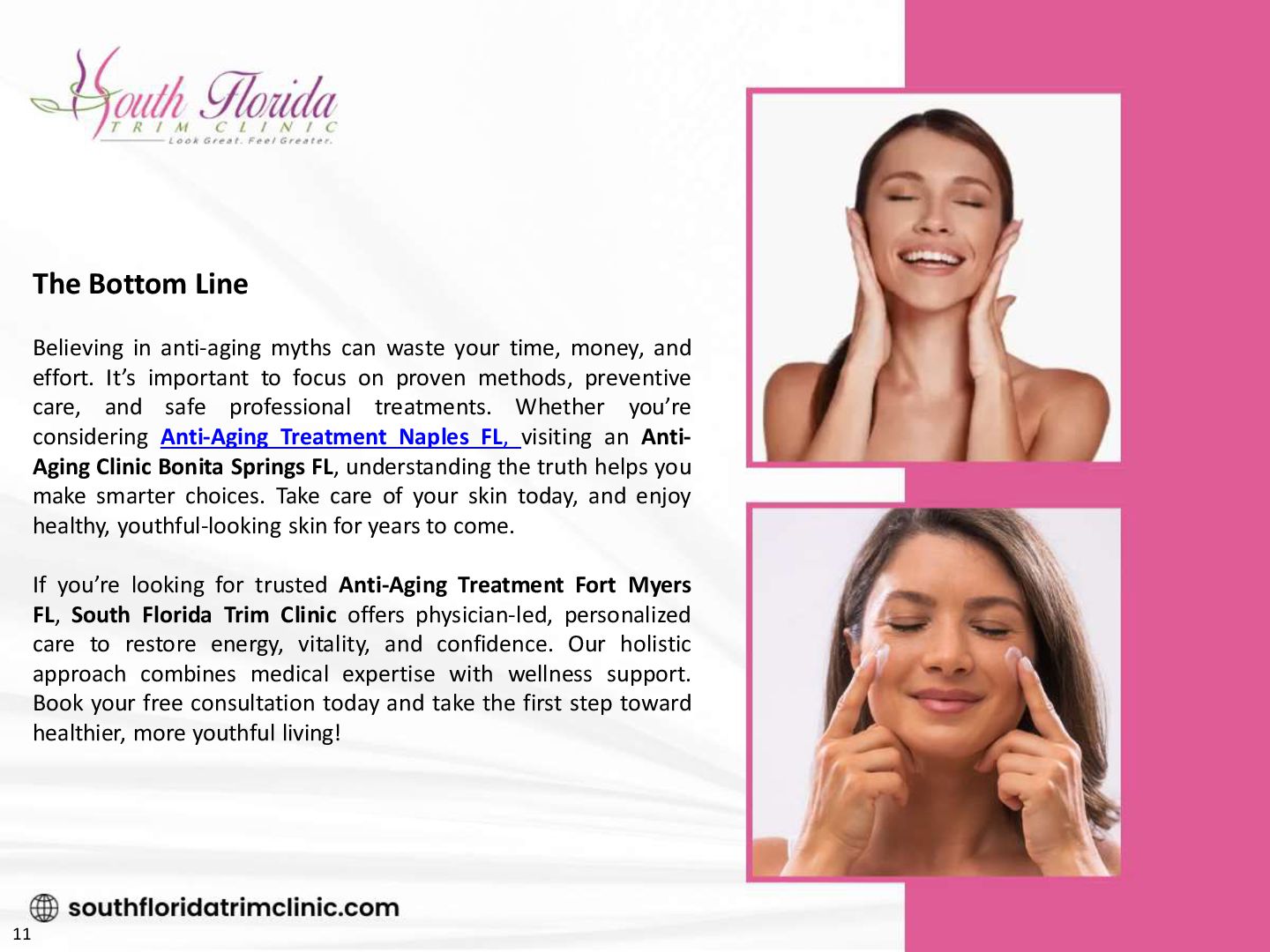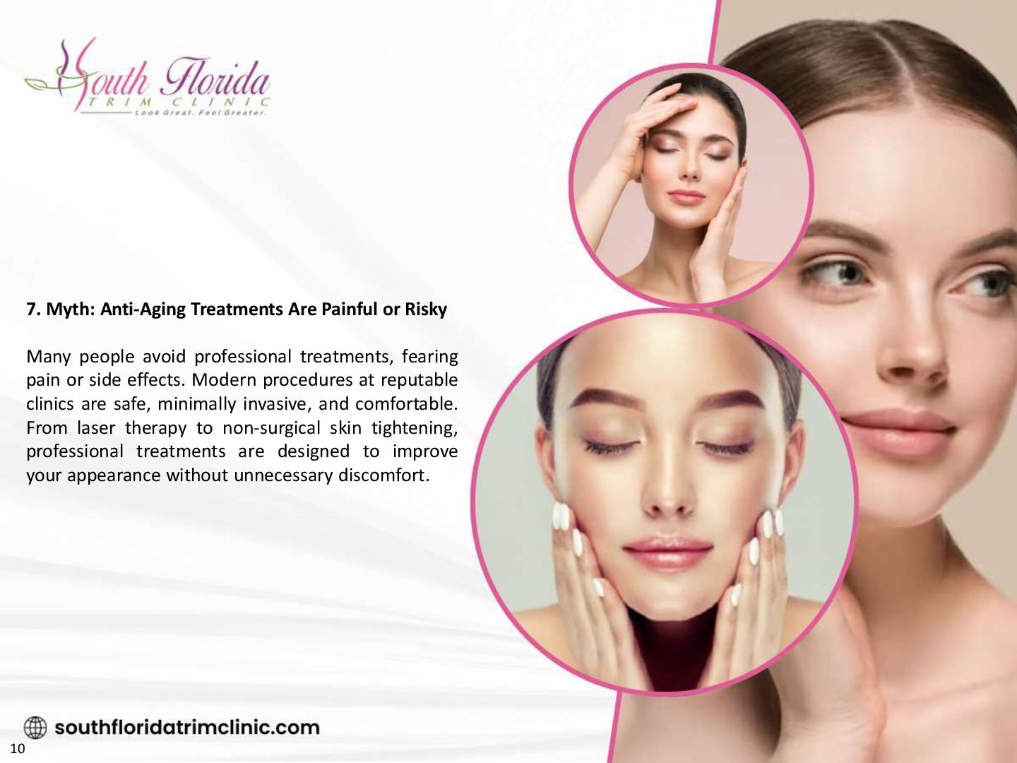 Aging is a natural process, but many of us want to slow it down and look youthful for longer. With the rise of Anti-Aging Treatment Naples FL, there’s plenty of information available online—but not all of it is true. Some beliefs about anti-aging are myths that can mislead you, waste your time, or even harm your skin. This blog will explore some common anti-aging myths and set the record straight. If you’re looking for trusted Anti-Aging Treatment Fort Myers FL, South Florida Trim Clinic offers physician-led, personalized care to restore energy, vitality, and confidence. Our holistic approach combines medical expertise with wellness support.