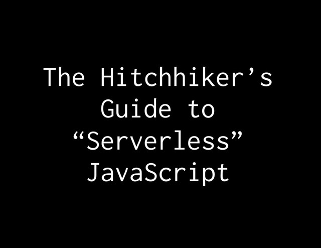 The Hitchhiker’s Guide to “Serverless” JavaScript