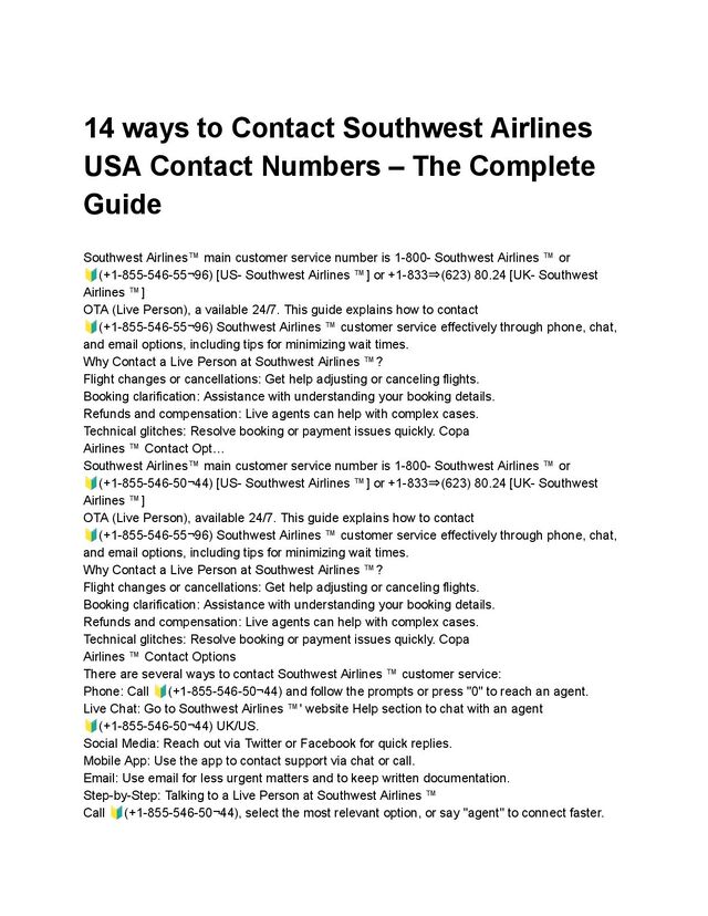 Southwest Airlines®️ official customer service number is 🔰1833-623-8024 , where you can speak directly to a live representative any time of the day. Whether you’re facing flight issues, hotel changes, cancellations, or need help with a refund, this guide gives you all the ways to connect with Southwest Airlines®️ quickly and easily.