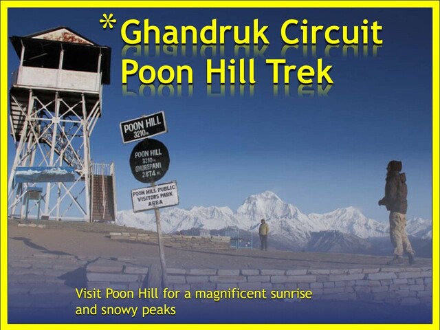 Poon Hill is one of the best places to watch a magnificent sunrise above Mt. Annapurna. It is around 3210m high above the sea level. Considered as the finest spot to watch Himalayan Sunrise as the mountains turn from gray to a sudden red and finally a brilliant white. This trek takes 9 days to experience the beautiful mountain ranges of Himalayas. Filled with gurung tribes, you will experience a wonderful hospitality.